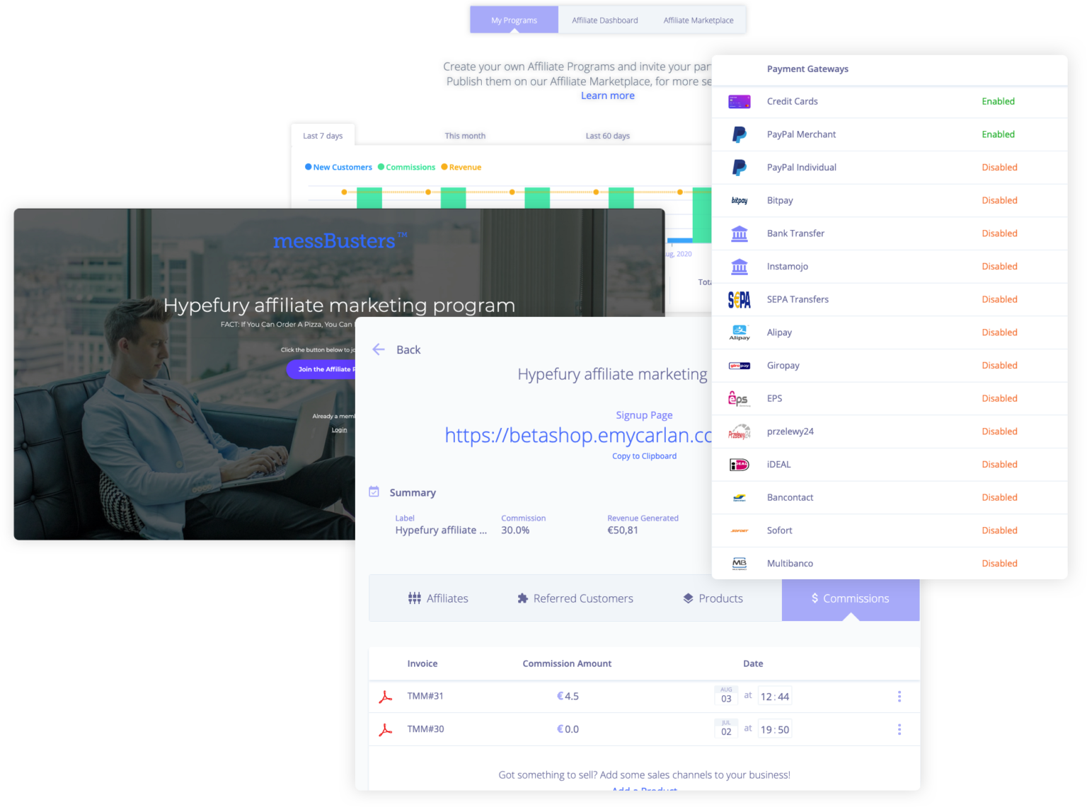 Multiple ways of getting paid, managed in a single place.